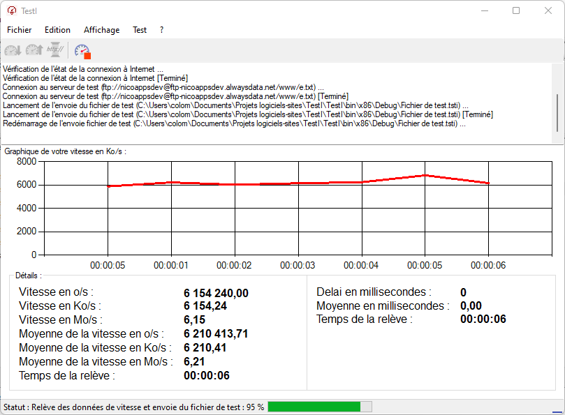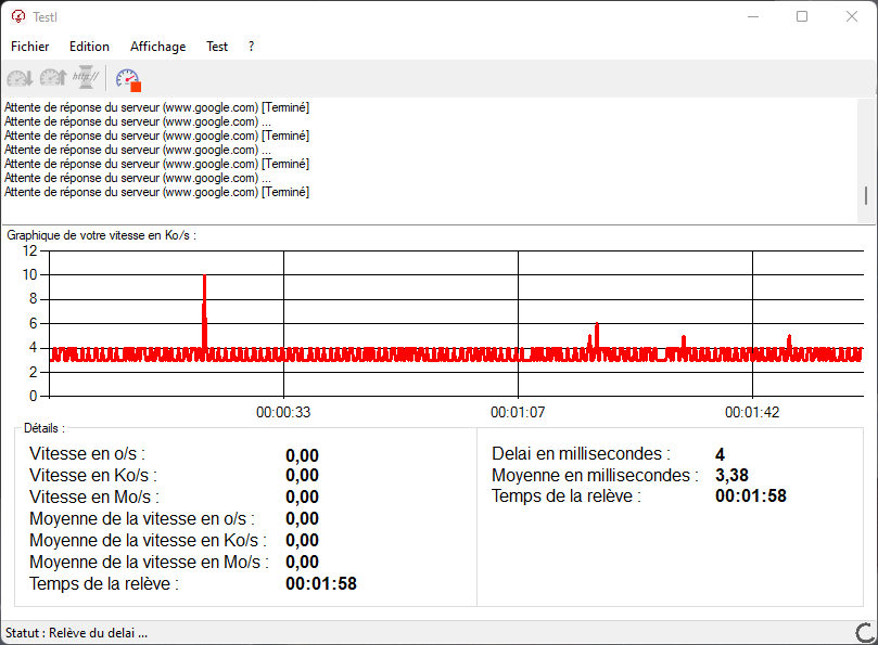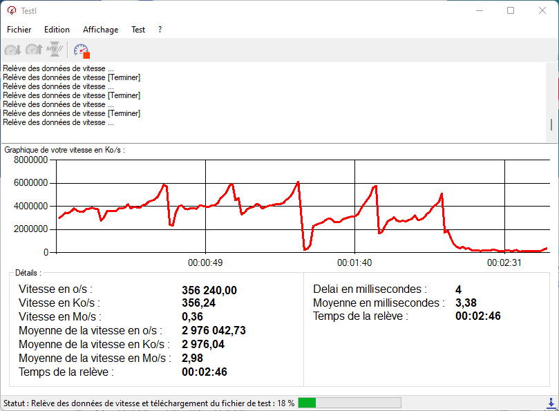 Des résultats clairs.Grâce au graphique intégré au logiciel, suivez l'évolution de votre connexion. Idéale pour détecter des problèmes éventuels avec votre ligne. Le logiciel calcule en temps réel la moyenne de votre débit/latence pour une meilleure compréhention des résultats. |